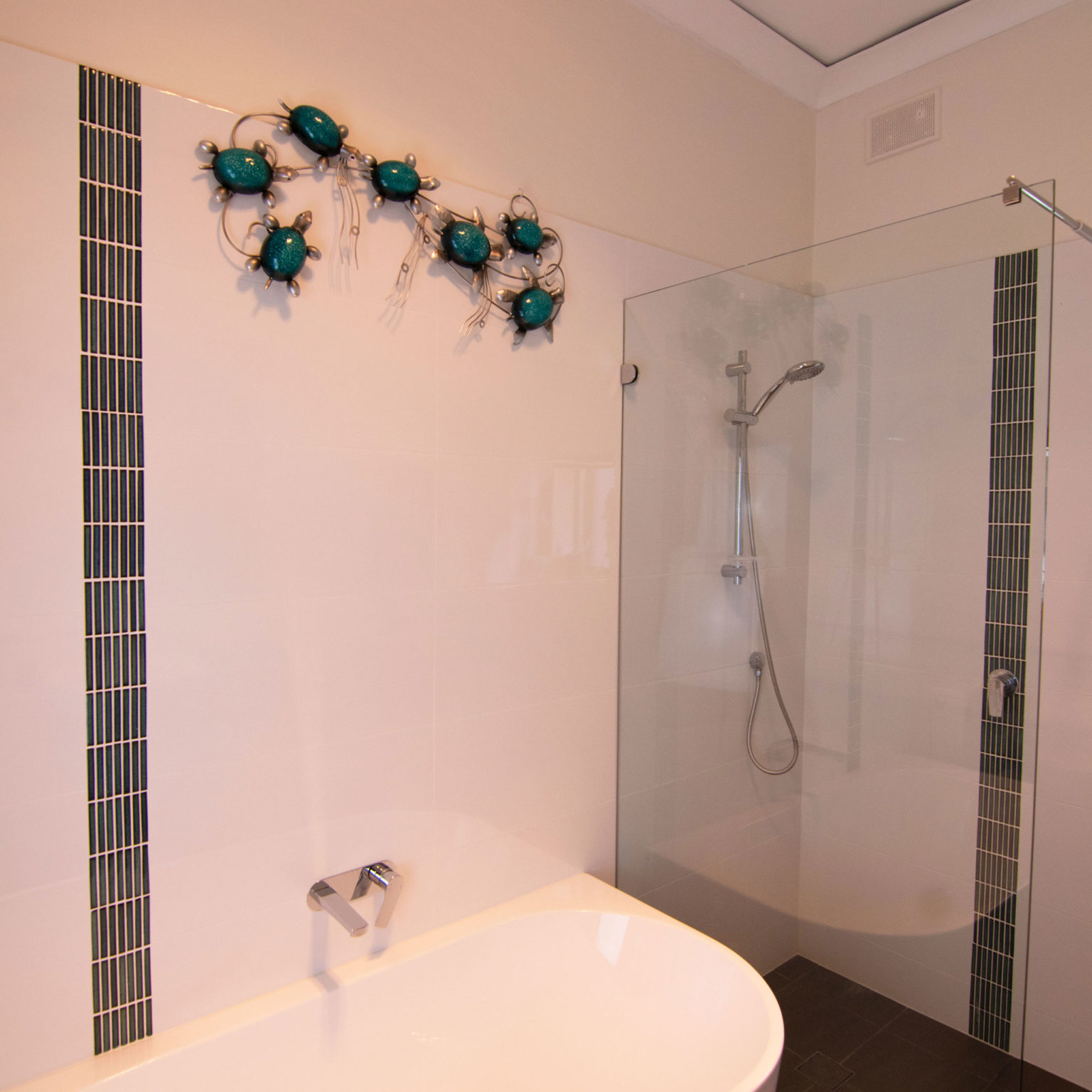 • Large format wall tiles with contrasting feature tiles