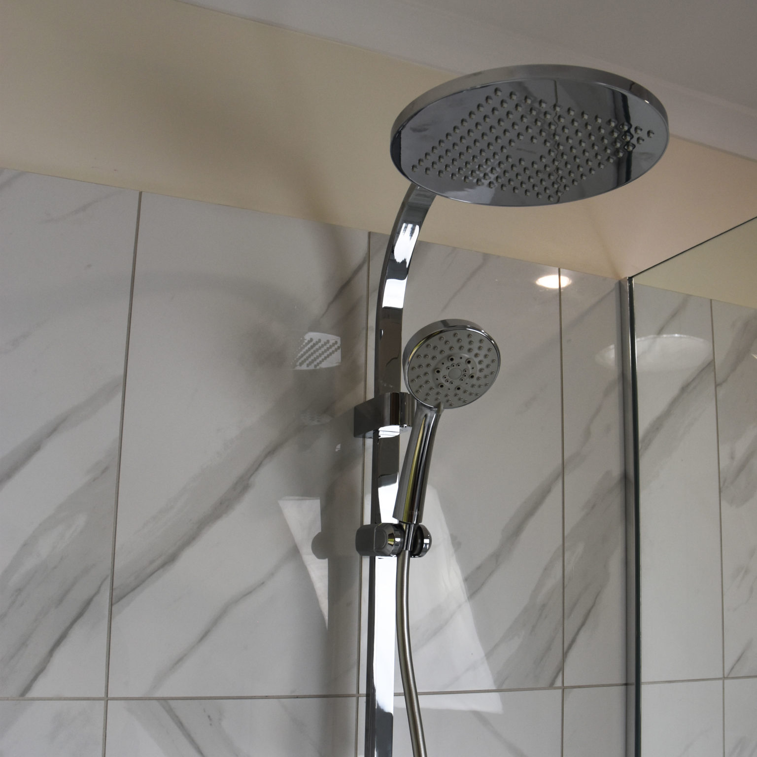 • Modern rainfall shower head and handheld shower